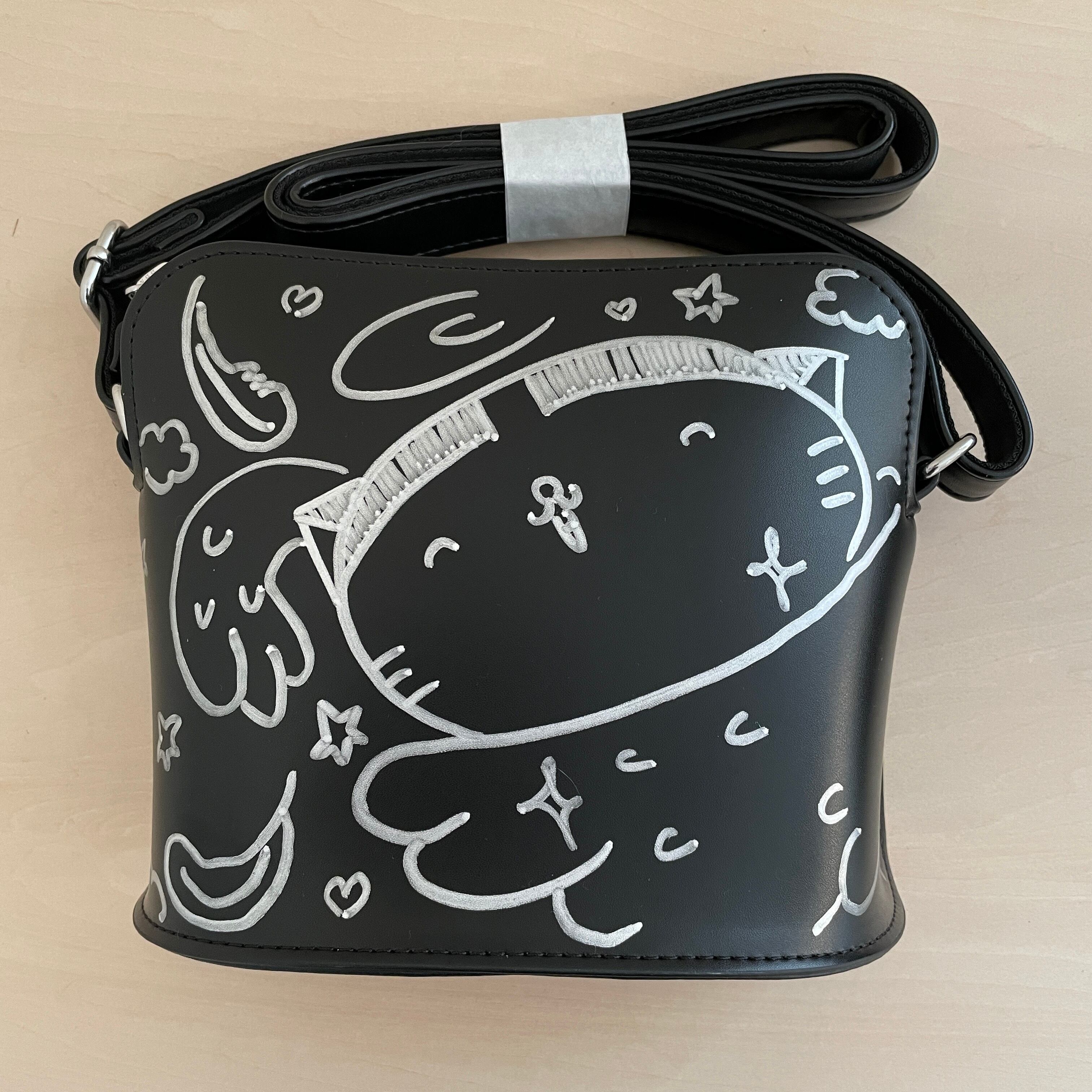 ニャジロウ画伯の手描きポーチです。
